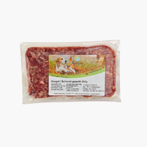 Fleisch mit viel Knorpel. Knorpel ist gut für die Gelenke. Schilddrüse ist in unserem Produkt nicht enthalten.