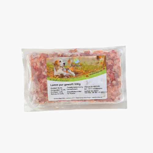 Unser Lammfleisch Pur ist besonders gut verträglich. Daher eignet es sich auch für Hunde, die unter Allergien leiden. Das Fleisch ist ein wertvoller Energielieferant, der zudem viele Proteine beinhaltet. Durch die Zusammensetzung des Fleischs erhält Ihr Vierbeiner nahezu alles, was er für eine artgerechte Ernährung benötigt. Unser Lamm pur besteht aus 100% Muskelfleisch vom Lamm.