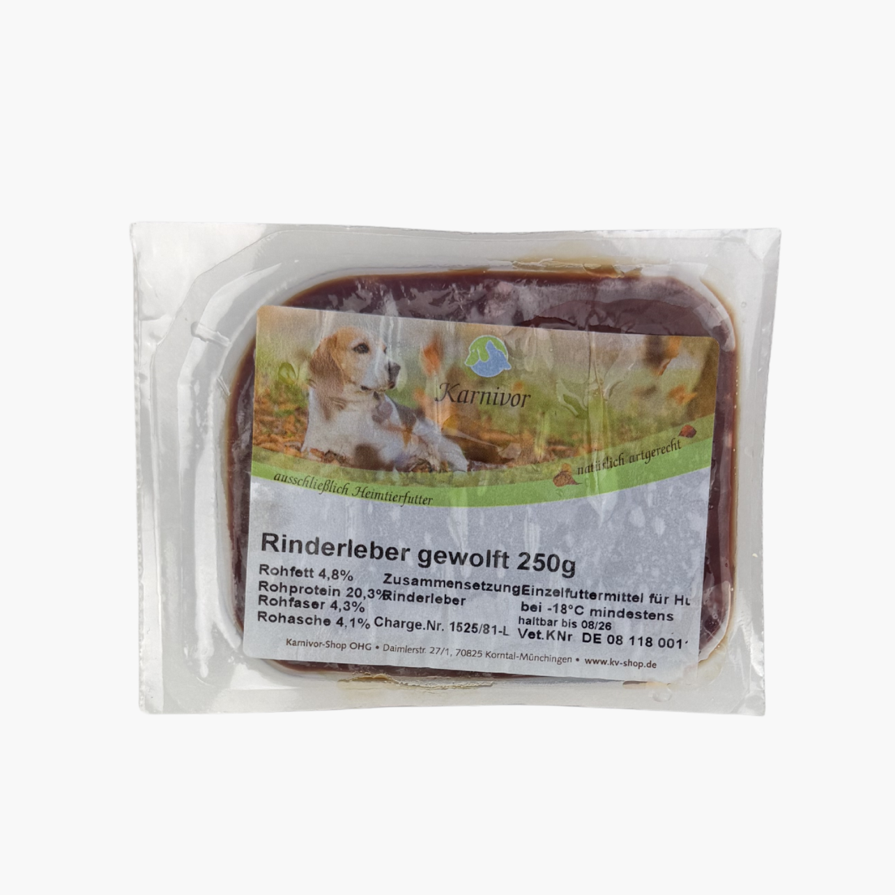 Rinderleber ist reich an den Vitaminen A, B1 und B2. Sie wird von Hunden gerne angenommen und stärkt das Immunsystem. Artikelanzahl im Warenkorb veränderbar.