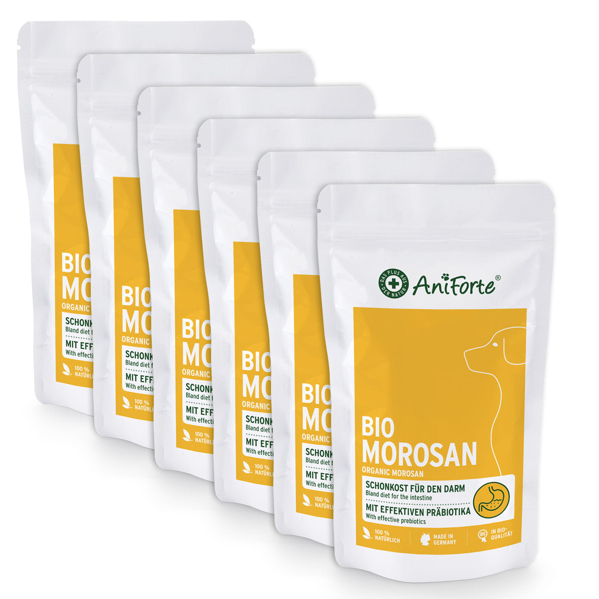 AniForte® Bio Morosan ist ein innovatives Ergänzungsfuttermittel für Hunde und Katzen, welches die „Möhrensuppe nach Moro“ mit einem effektiven Präbiotikum vereint. Diese Kombination kann als schonende Unterstützung bei vorübergehenden Verdauungsstörungen gefüttert werden. Hergestellt aus Bio-Karotten und Bio-Topinamburextrakt erhältst Du ein hochwertiges Naturprodukt zur Erhaltung der Darmgesundheit Deines Vierbeiners.